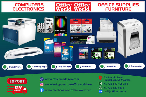 OFFICE WORLD Imprimeurs Sint Maarten Informations de contact P.O. Box 890. 53, Pondfill Road. - Philipsburg +1(721) 542 4050 - 542 4058 WhatsApp +1(721) 522 6114 +1(721) 542 2693 mail@officesxm.com http://www.officeworld.com Description Nous écrire Votre nom * Votre adresse de messagerie * Objet Votre message Je consens à ce que Teledom collecte, traite, stocke et utilise mes données personnelles en lien avec ce formulaire afin de pouvoir répondre à ma demande par la réception d'informations par e-mail. Veuillez consulter nos conditions d'utilisation pour plus d'informations.* Fiches similaires PRINT EXPRESS AND GRAPHICS Imprimeurs 33 A. C.A. Cannegieter Street - Philipsburg 527 6590 Sint Maarten AHMOSIS Imprimeurs B.P. 1125 - Marigot 06 90 50 28 36 Saint Barthélemy RAPIDO PRINT Imprimeurs Centre Commercial Howell Center. BP 3476. - Marigot 05 90 87 75 17 Saint Martin Low Cost Printing Imprimeurs #14 A.T. Ilidge Road (located next to the immigration office) - 524 1844 Sint Maarten